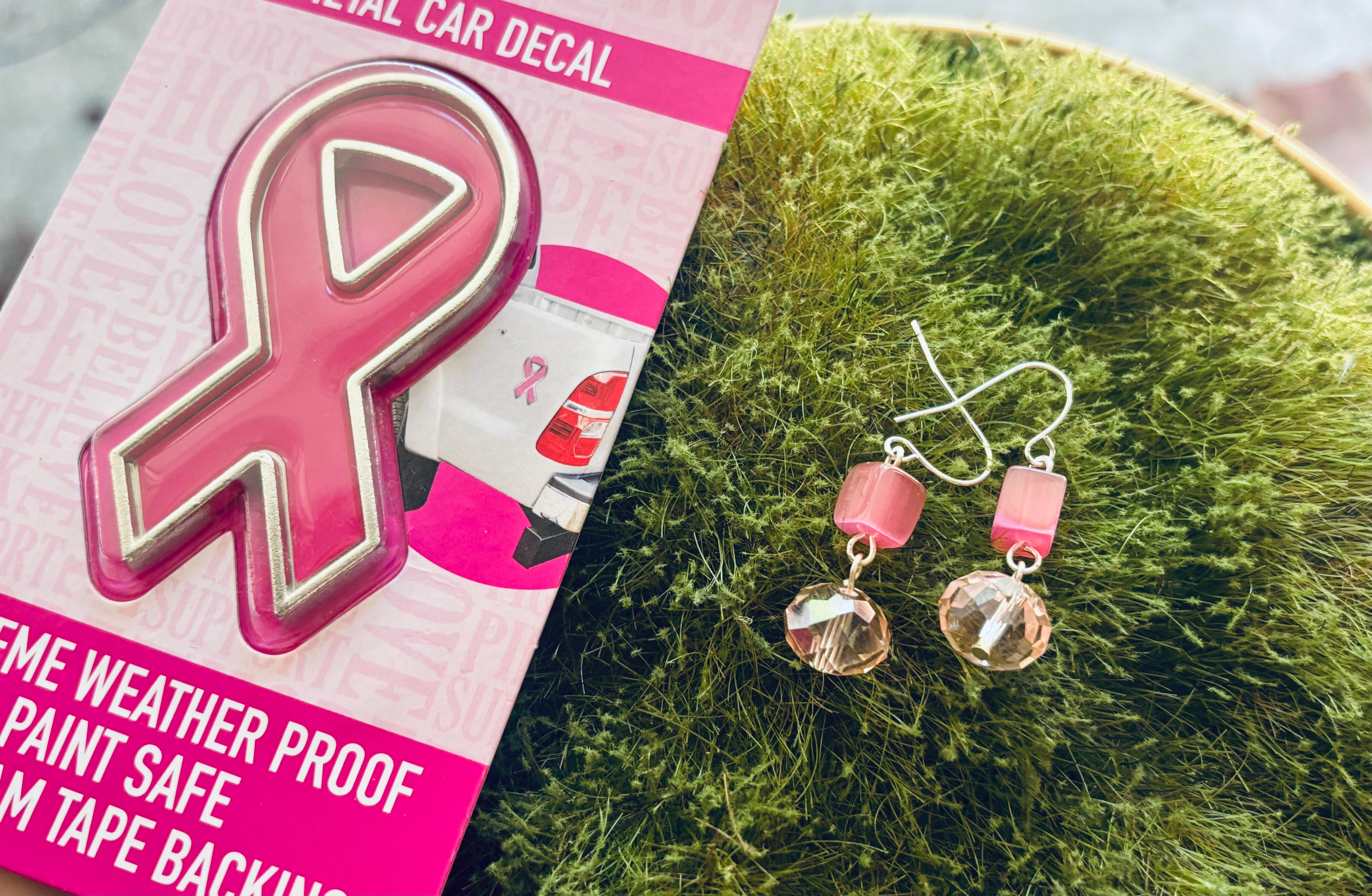 These pink cats eye and crystal earrings are a sparking reminder to stay on top of regular exams and early detection. It’s also a great way to show our support for those going through a battle with breast cancer.
