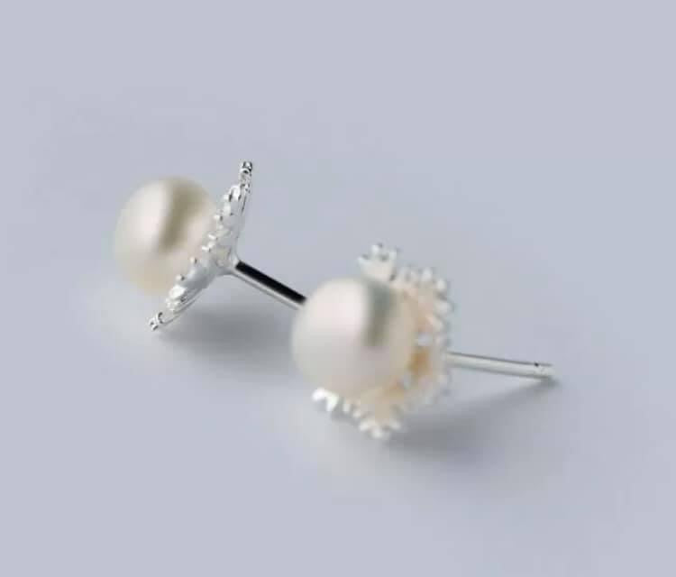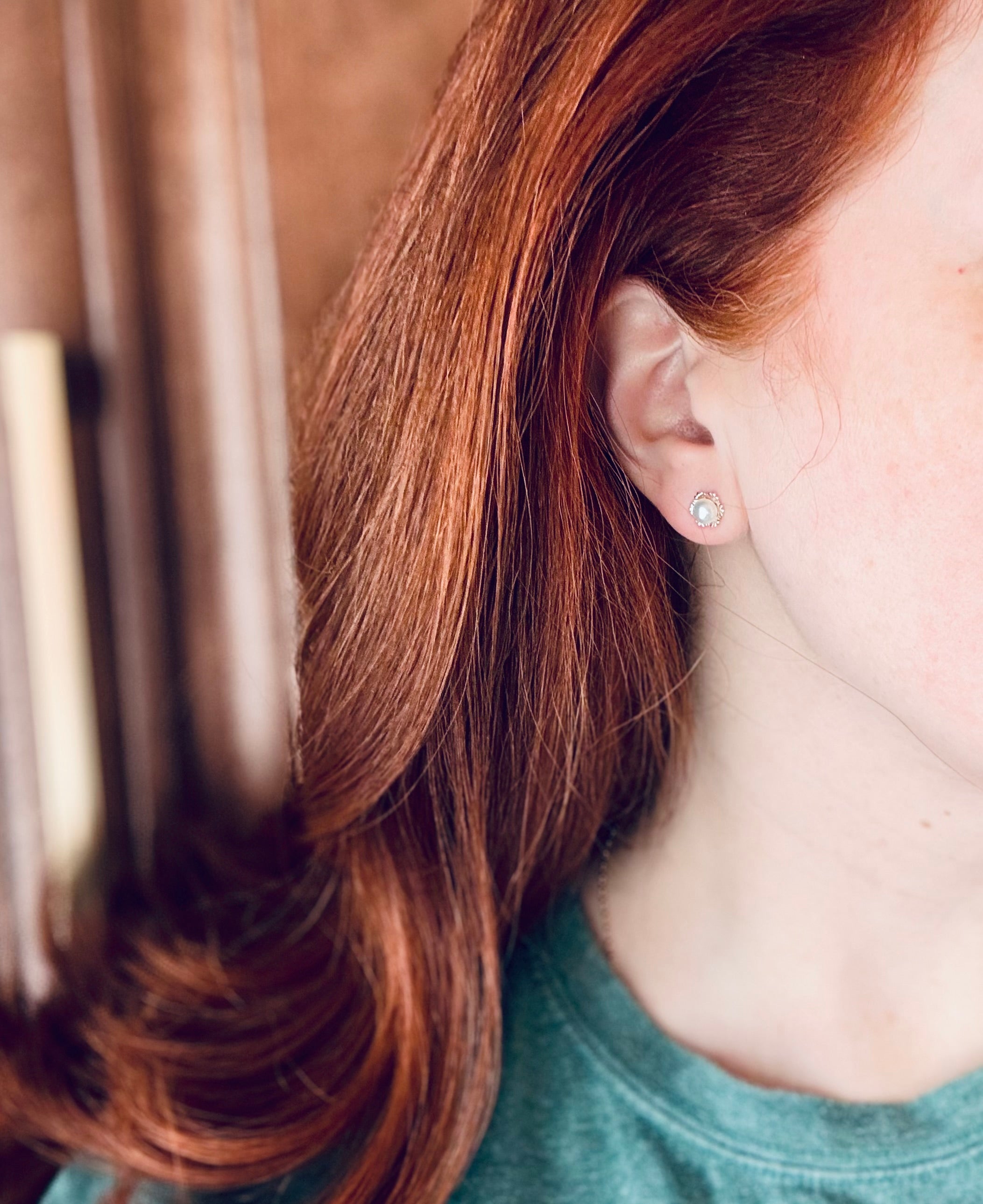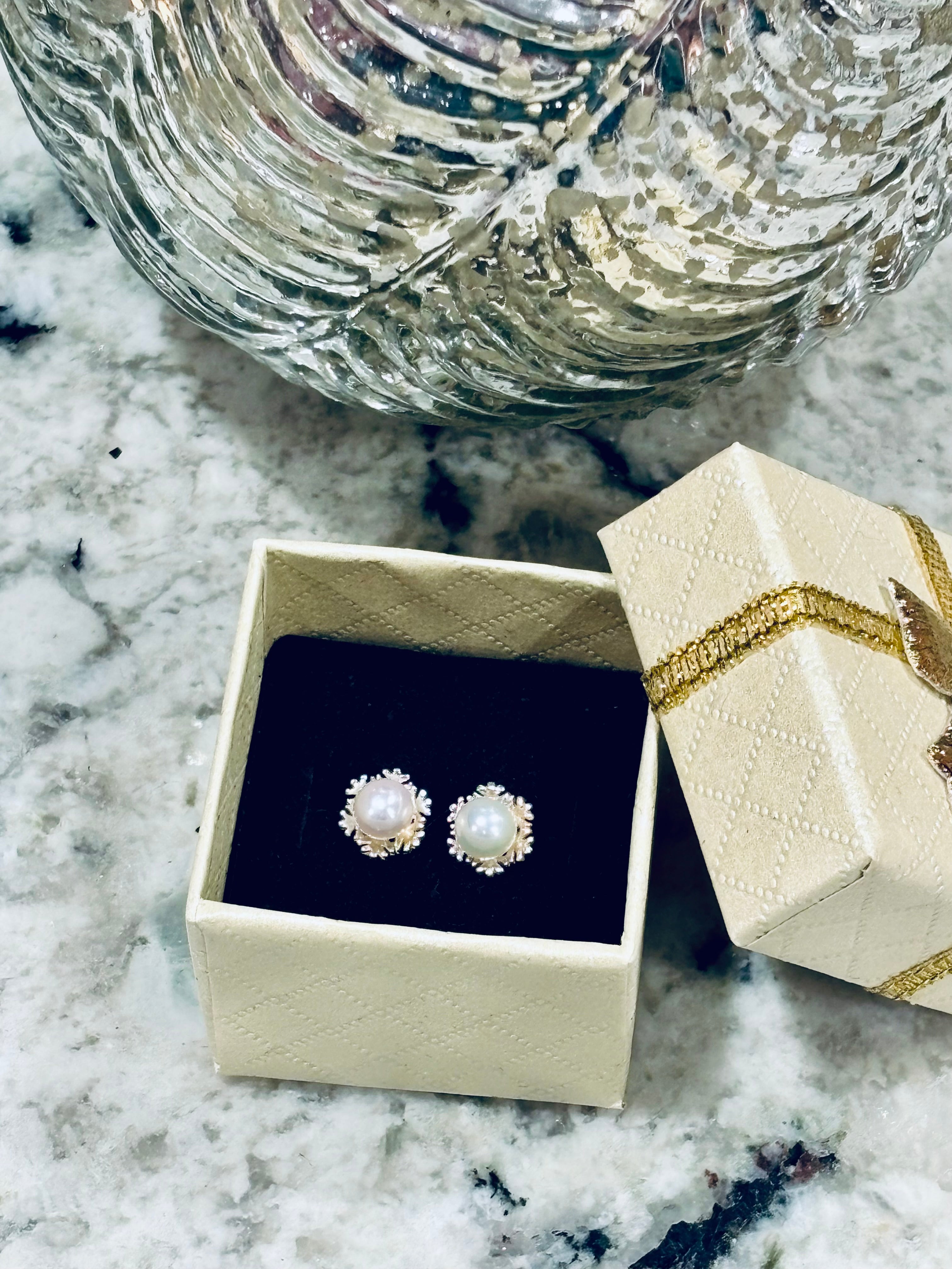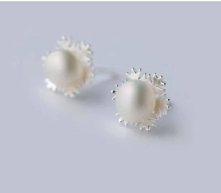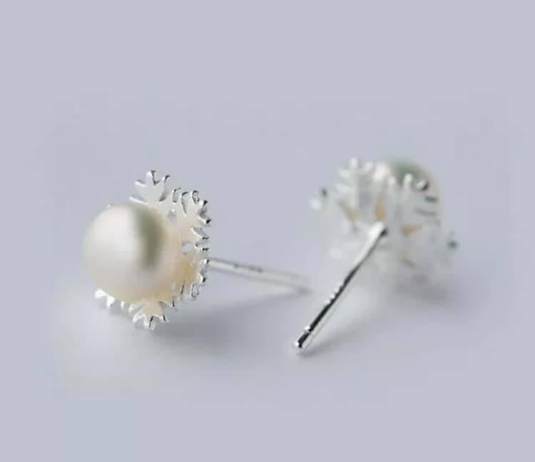 These dainty sterling silver snowflake studs are 8 mm. They have a 4 mm pearl in the center. Aren’t they the perfect touch of winter whimsy to last all season long?