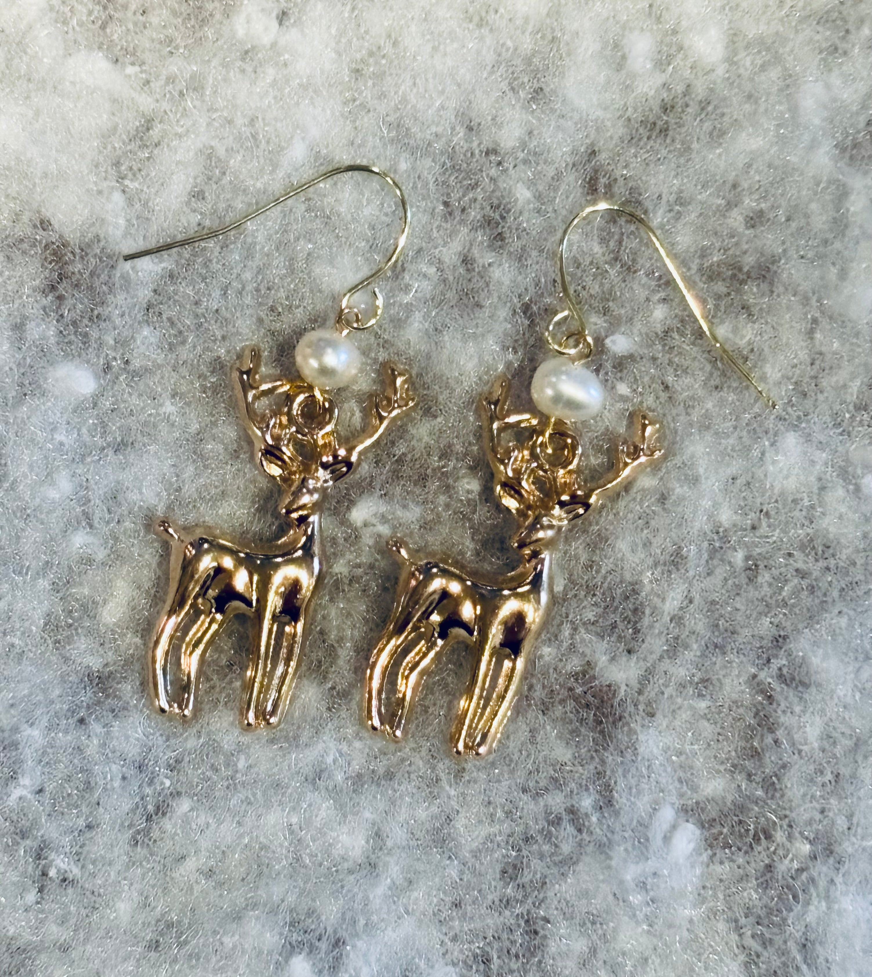 Golden Deer Pearl Earrings