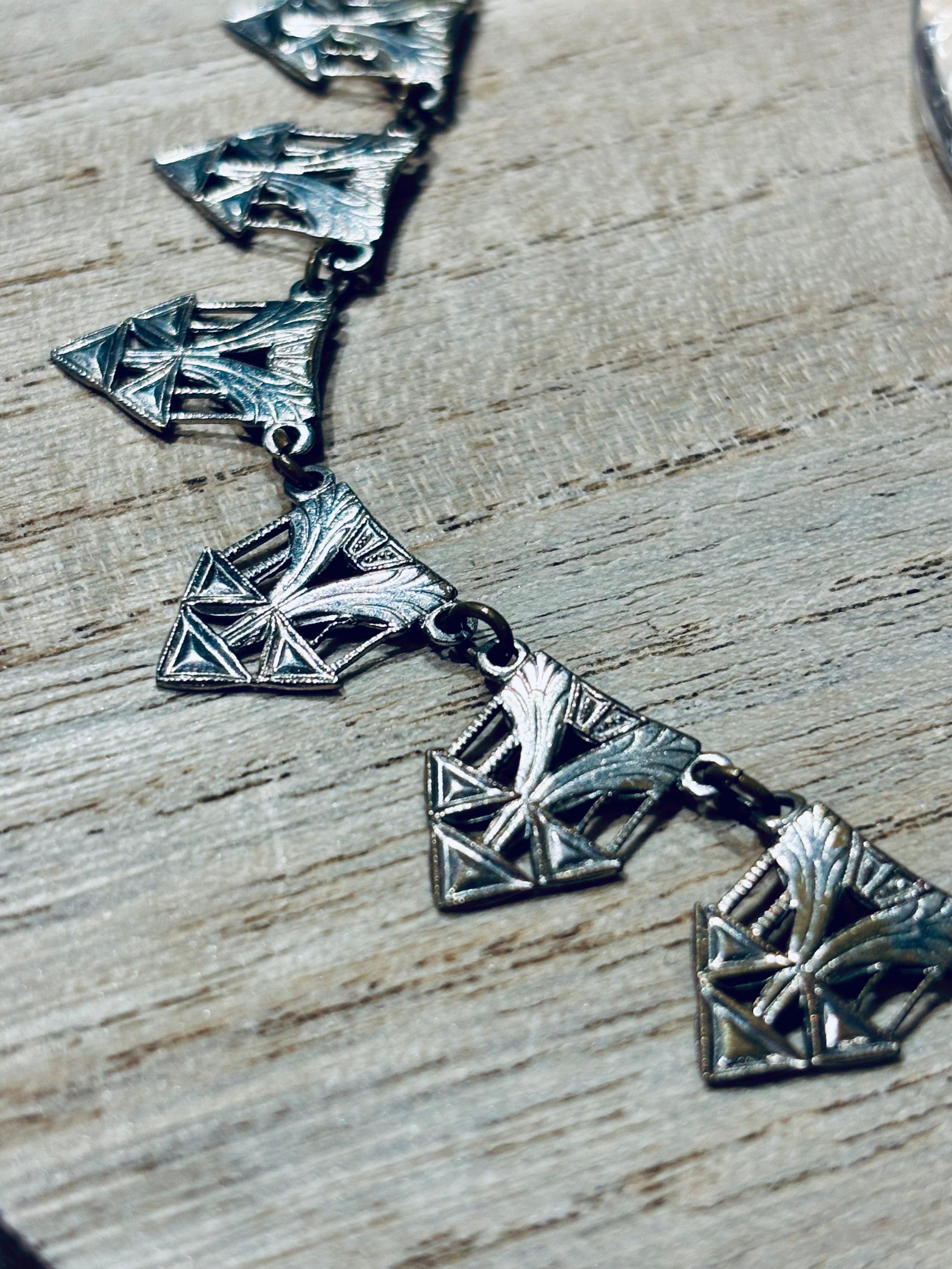 These have had my creative juices flowing for days! When I found this early 1900s, Egyptian revival necklace I just had to make some earrings! Remember when we learned that jewelry was heavily influenced by the exciting discovery of King Tut’s tomb? It truly shaped fashion in every sense. From ornate hair pieces, jewelry, to the cut of dresses, even the way makeup was worn. Very little was left without a breath of Egyptian influence. Colorful stone jewelry was made abundantly popular during this time as well.