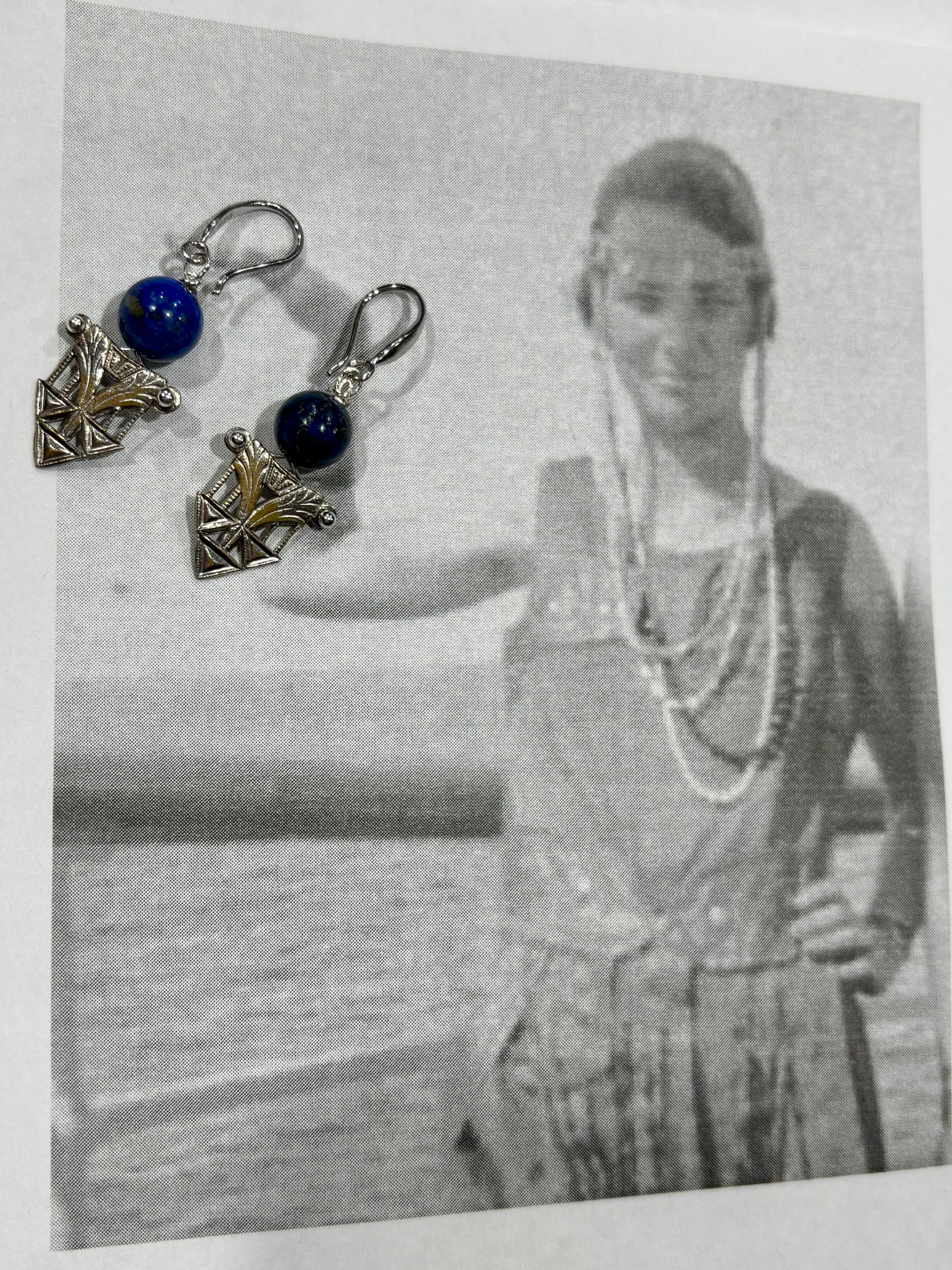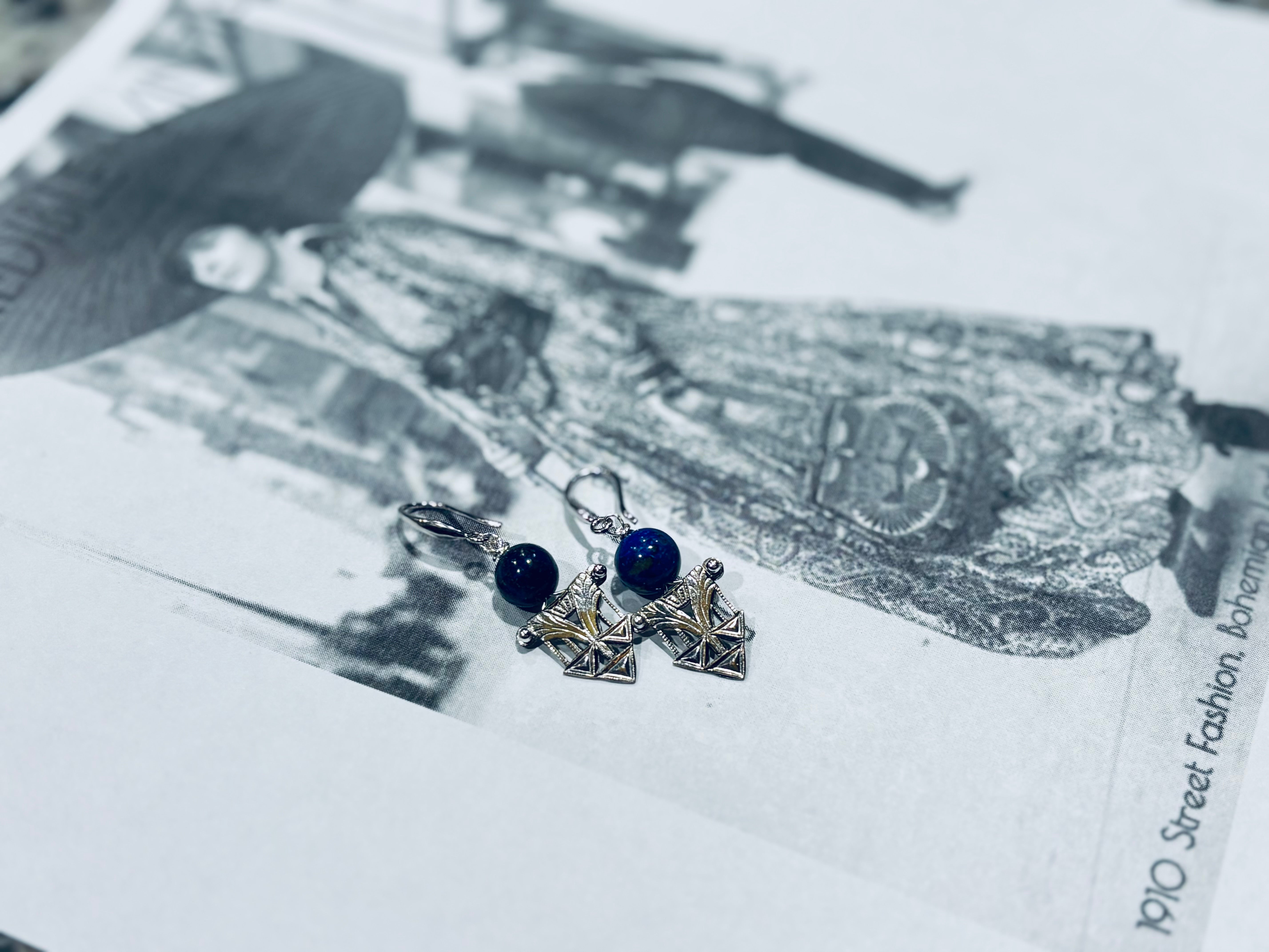 I disassembled this Egyptian revival necklace to make individual pairs of earrings and paired them with gorgeous lapis lazuli stone and solid sterling ear hooks.